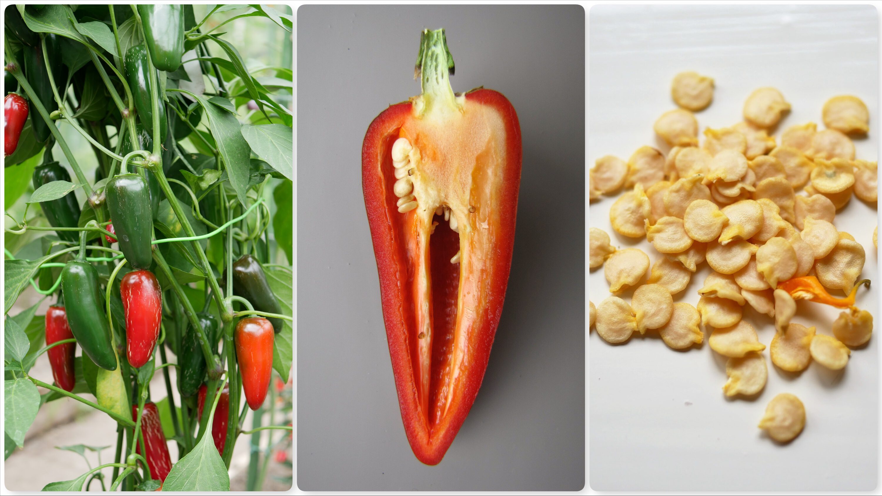 Dit is een soort waarvan het heel makkelijk is om zelf zaden van te oogsten. Paprika’s en pepers zijn eigenlijk dezelfde planten en kunnen daardoor makkelijk kruisen, houd dus voldoende afstand tussen 2 rassen. Verder is het heel simpel: laat een mooie gezonde vrucht aan de plant rijpen (niet overrijp maar wel rijp, niet nog voor een deel groen). Oogst de paprika of peper, snijd open en haal de zaden eruit, de paprika of peper kun je daarna gewoon opeten. Laat de zaden op een schoteltje nog een aantal dagen drogen. Je kunt dus ook van paprika’s en pepers zaden oogsten wanneer je eens een leuk, lekker of bijzonder ras op vakantie of een markt hebt gekocht. Oogst liever geen zaden van F1-hybriderassen omdat die kans geven op bijvoorbeeld een kleinere opbrengst of andere smaak, etc..