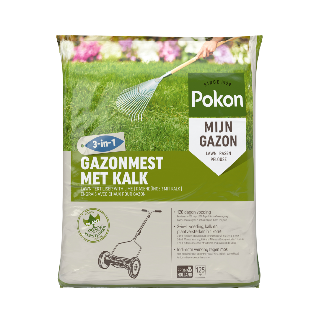 • Vind je dat jouw gazon een beetje vaal is van kleur of kleur verliest? Gebruik dan kalk met magnesium, zoals onze gazonmest met kalk. Dit product is een gecombineerde mest + kalk korrel. Strooi je Pokon Gazonmest met Kalk 3-in-1 in het voorjaar of in het najaar, dan hoef je niet apart je gazon te bekalken. Ideaal!