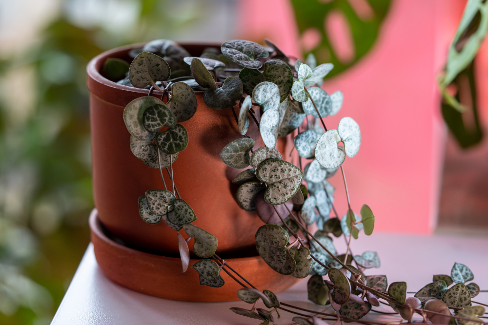 Het Chinees lantaarnplantje, ook wel bekend als Ceopegia Woodii of ‘String of Hearts’ is een prachtige hangplant die direct de aandacht trekt. De plant heeft dunne takken met hartvormige bladeren en krijgt soms kleine bloemen die lijken op schattige roze lantaarntjes. Deze plant is ideaal voor iedereen, zelfs als je weinig ervaring hebt met planten. Omdat dit lantaarnplantje een vetplant is, heeft hij weinig water nodig. Zelfs in de zomer is een klein scheutje per week al genoeg. Vergeet je hem een keer water te geven? Daar kan hij goed tegen! Geef hem pas water als de bovenste laag potgrond droog aanvoelt. Echt een makkelijke hangplant voor binnen! Dit plantje groeit het beste op een plek in de halfschaduw, waar het zonder al te veel zonlicht prachtig kan stralen.