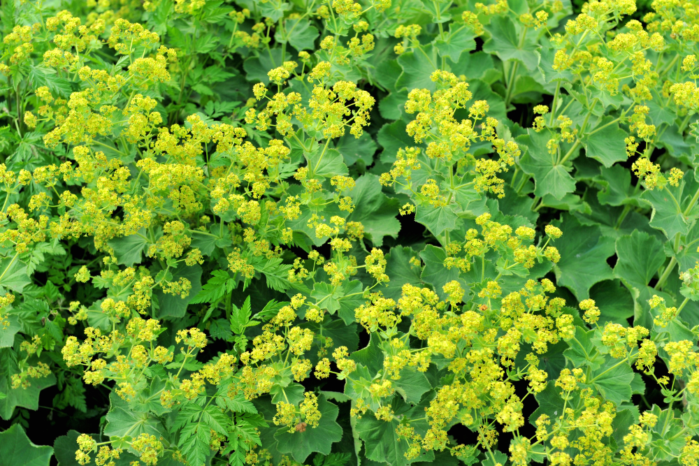 Vrouwenmantel (Alchemilla mollis) is een charmante plant met delicate, gele bloemen. Bijen worden aangetrokken door de nectar van deze bloemen. Vrouwenmantel is ook een uitstekende bodembedekker en voegt een vleugje elegantie toe aan je tuin.