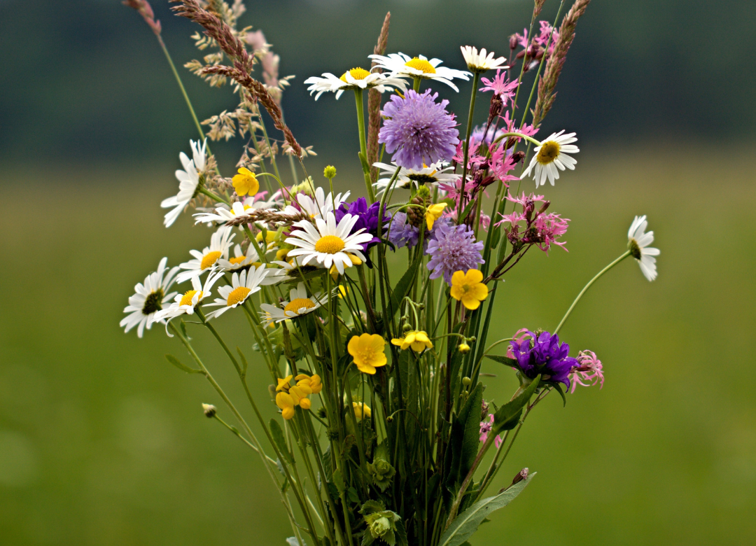 Het maakt bij een plukboeket niet uit wat je in het boeket stopt. Kies de kleuren en bloemen die jij mooi vindt. Het is leuk om gebruik te maken van verschillende lengte bloemen voor een speels effect. Voeg naast bloemen ook wat blad en ander groen toe. Een voorbeeld hiervan is rietgras, maar ook bijzondere zaaddozen.