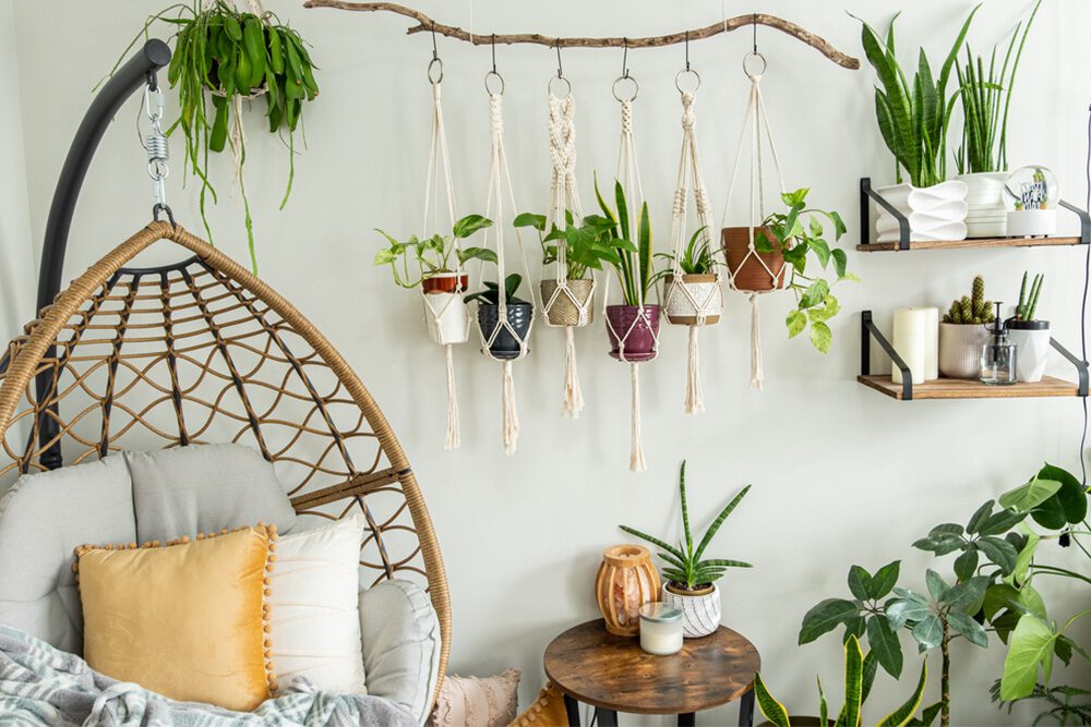 Werk jij liever de hoogte in? Dan zijn wandplanken, wandkasten of hangplanten wellicht een optie voor jou. In plaats van een statisch schilderij of een kast vol prullaria, heb jij nu een levendige groene plantenwand als muurdecoratie. Super gaaf! En bij deze is het zeker geen gevalletje “óf/óf ”, maar “én/én”. De planten zijn hier échte accessoires, je kunt hier dus ook helemaal los gaan met leuke plantenpotjes!