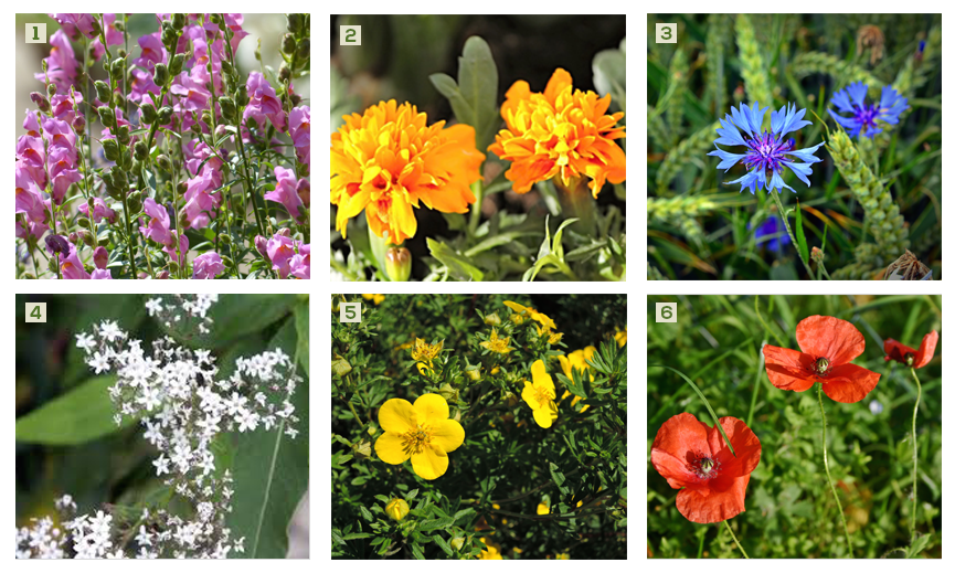 Eenjarige bloemenmengsels voor een bloemenweide bestaan uit verschillende kleuren. Veel voorkomende eenjarige bloemen in een bloemenweide zijn: