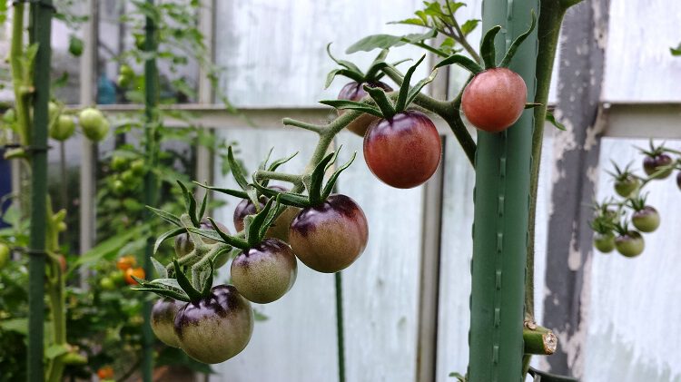 Een (nogal makkelijk) voorbeeld. Een ‘blauwe tomaat’ van het ras Indigo Blue Berries: