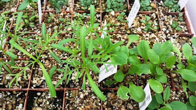 "Op 12 mei is het IJsheiligen en mogen de planten ‘officieel’ naar de kas, maar meestal brengen we ze wat eerder. Dat komt omdat de grond in de kas al zo is opgewarmd dat in de nacht dicht bij de grond de temperatuur een paar graden hoger blijft dan buiten. Dus gaan we goed naar de lange termijn weersverwachting kijken en gaan we, tenzij er nog een echte vorstperiode komt, elke keer dat we naar de tuin gaan al wat zaailingen naar de kas brengen. Maar daar moeten we dan wel eerst plaats zien te maken.