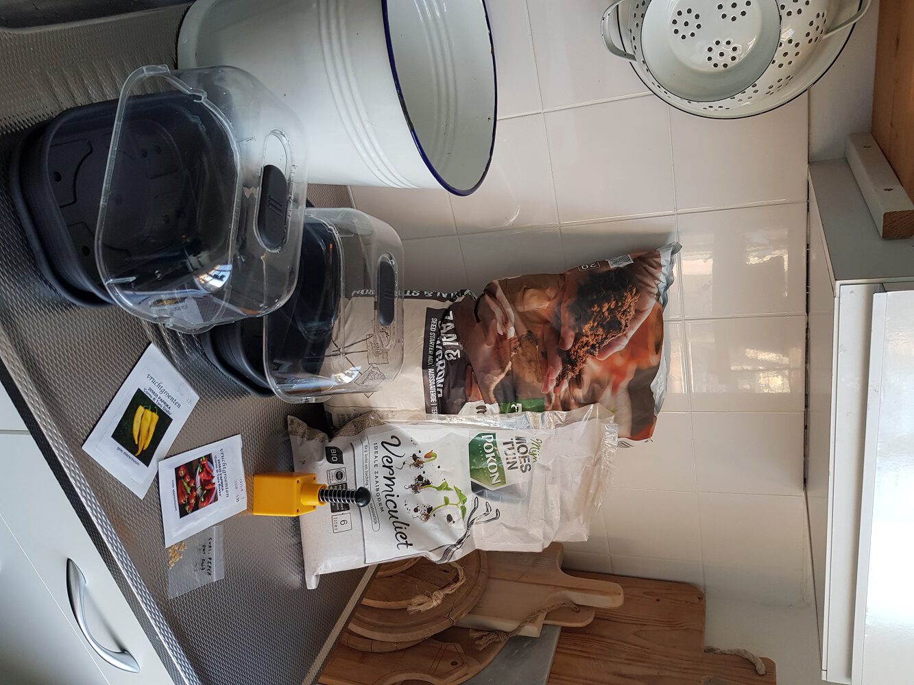 Als je gewassen binnen gaat voorzaaien in bakjes, potjes of zaaitray, gebruik dan zaai- en stekgrond. Deze combinatie van losse grond en genuanceerde voeding zorgt ervoor dat de kleine worteltjes van je zaailingen niet verbranden en dat de wortels vrij baan hebben om groot en sterk te worden. Je kunt ook vermiculiet gebruiken.