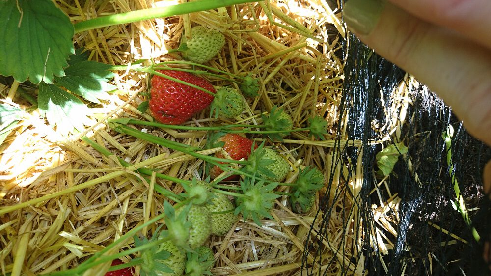 Aardbeien afdekken