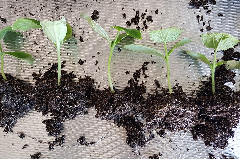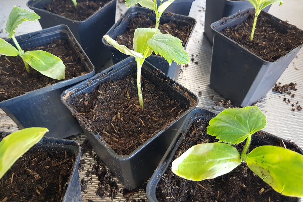 Er zijn natuurlijk altijd uitzonderingen. Niet alle gewassen zaai je in zaai- en stekgrond, want sommige zaai je direct in universele potgrond. Deze verpot je ook om de 2 à 3 weken om ze zo de juiste hoeveelheid voeding te kunnen geven in het eerste groeiproces. Doe je dit niet, dan merk je dat de plant achterblijft in de groei. Dit zijn de gewassen die ik direct in potgrond zaai: courgette, pompoen en mais. Deze gewassen zijn echte veelvraten en houden heel erg van voeding. Niet alleen binnen als je ze opkweekt, maar ook als je ze buiten uitplant. Zorg er dan voor dat de grond goed bewerkt is met wat extra compost.