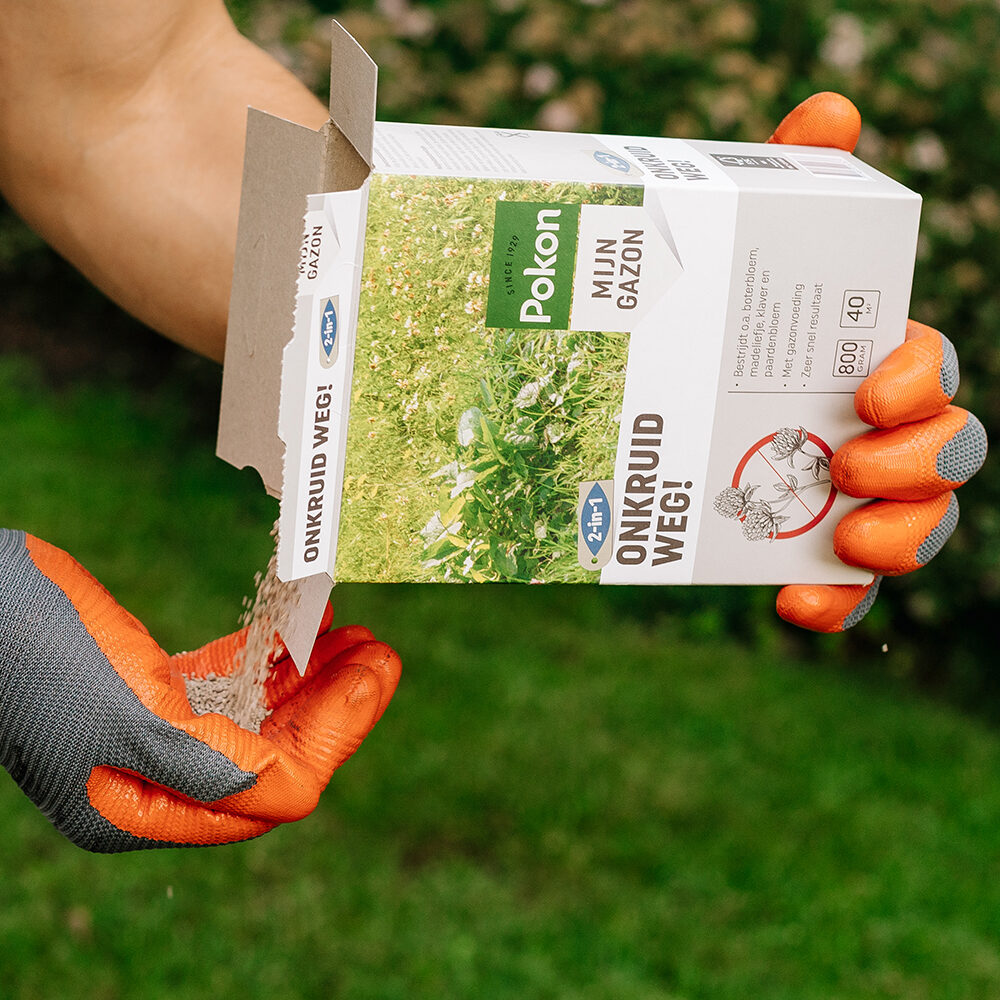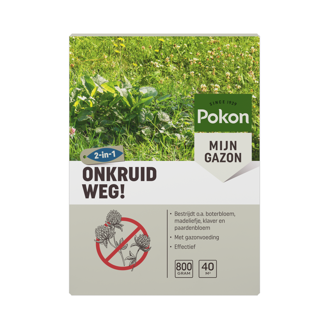 Onkruid in je gazon kan een doorn in het oog zijn. Het is belangrijk om niet te lang te wachten om het onkruid uit je gazon te verwijderen, want voor je het weet heb je meer onkruid dan gras in je gazon staan. Bestrijd onkruid uit je gazon met Pokon Onkruid Weg! Dit product bevat een onkruid bestrijdingsmiddel en een gazonmest in één. Dit zorgt ervoor dat het onkruid heel hard gaat groeien waardoor het uiteindelijk kapot groeit, en is daarmee niet schadelijk voor je gras. Onkruid Weg is effectief tegen o.a. boterbloem, madeliefjes, klaver en paardenbloem.