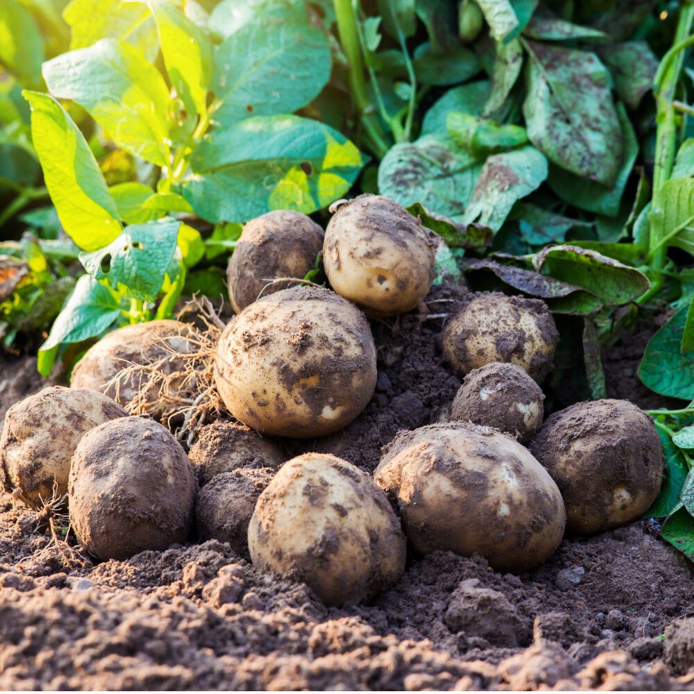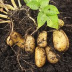 Om te beoordelen of aardappels geoogst kunnen worden, kijk je naar het loof (het aardappelplantje). Zodra het loof afsterft of helemaal is afgestorven, weet je dat er geoogst kan gaan worden. Uitzondering op de regel zijn vroege aardappelen. Deze kunnen al geoogst worden zonder dat het loof is afgestorven. Rooi de aardappelen met een platte vork: steek de vork onder de knollen en licht de grond op.
