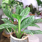 De Aglaonema Silver Moon onderscheidt zich door opvallend gekleurde bladeren met een lichte streep in het midden. Deze onderhoudsvriendelijke plant is geschikt als kamer- of kantoorplant en biedt jarenlang plezier met zijn sierlijke karakter.