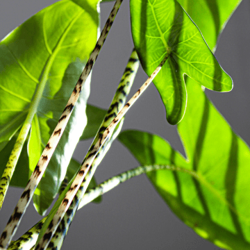 De Alocasia wordt ook wel Olifantsoor genoemd. Dit komt door de bladeren die net zo groot kunnen worden als een olifantsoor. De Alocasia Zebrina heeft iets minder grote bladeren en is goed als kamerplant te houden. Deze plant heeft zijn naam te danken aan de zebraprint op de bladstelen. Daarnaast is de Alocasia Zebrina ook te herkennen aan zijn lange, pijlvormige bladeren. Deze leuke kamerplant geeft zo een jungleachtige sfeer aan jouw kamer.