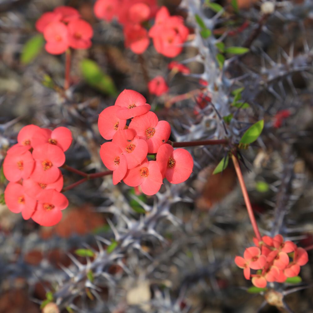 De Christusdoorn is een makkelijke plant die weinig water nodig heeft. Zet de plant op een vaste plek en voorkom temperatuurdalingen onder 15°C. Snoeien is meestal niet nodig. Let op dat de plant niet te nat wordt, want dat kan bladval veroorzaken.