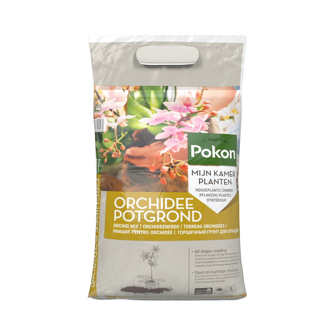 Orchideeën groeien in de natuur vaak op bomen en takken met hun wortels in de lucht. Als je de orchidee met zijn wortels in dichte grond plant, kunnen de wortels snel bruin worden en wegrotten. Pokon Orchidee Grond is heerlijk luchtig om je orchidee goed in te laten groeien en bloeien.