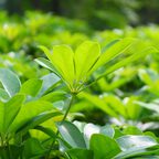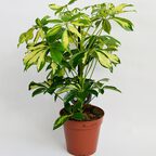 De Schefflera Arboricola, ook wel bekend als de Dwergscheflera, heeft fijn vertakte bladeren en een compacte groeivorm.