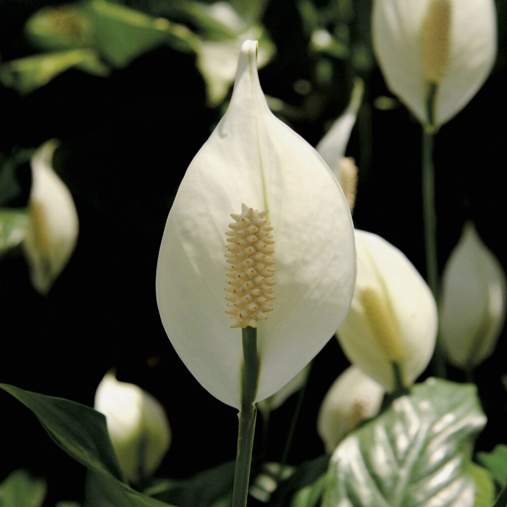 Spathiphyllum Sensation is een grotere variant en valt op door zijn grote bladeren en imposante bloemen. De bladeren zijn breed en donkergroen, en de bloemen zijn opvallend wit. Deze soort kan een indrukwekkende aanvulling zijn op grotere binnenruimtes.