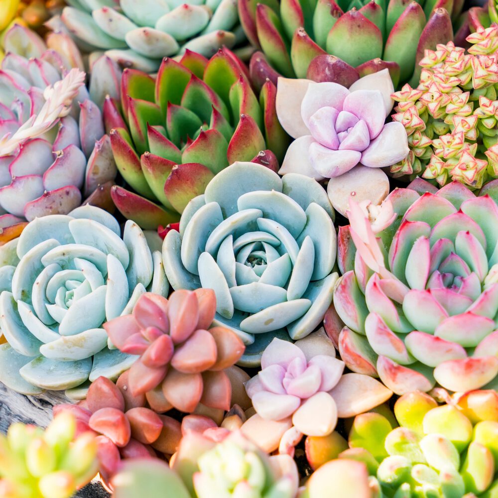 De Succulent is eigenlijk geen plantenfamilie, maar komt wel in veel andere plantenfamilies voor. De bekendste soorten succulenten zijn cactussen, Aloë Vera, Echeveria en Agave. Je kunt Succulenten vinden in allerlei kleuren, zoals paars, grijs of groen. Vanwege hun verscheidenheid passen ze in iedere huiskamer!