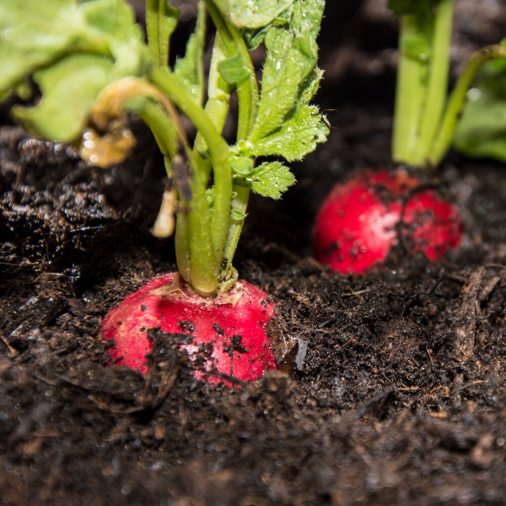 Radijs is ook een makkelijk te kweken groente omdat het maar weinig eisen stelt aan de bodem en grondsoort. Biologische (moestuin)grond of een met een laagje compost verrijkte bodem vormt het ideale bed voor dit gewas. Qua verzorging dien je de bodem enkel voldoende vochtig te houden. Door regelmatig water te geven voorkom je verder voosheid of een zeer scherpe smaak. Voze radijsjes hebben een sponzige structuur en komen bij warm weer en aanhoudende droogte veel voor.