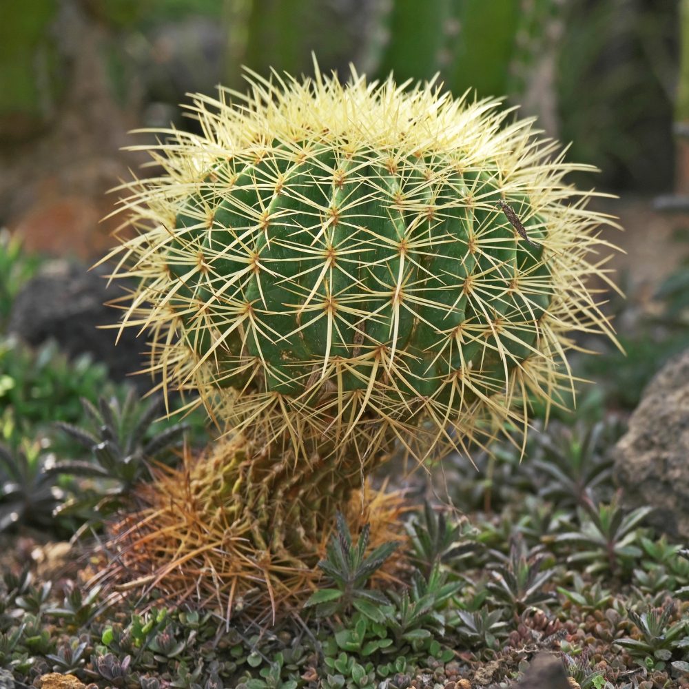 De echinocactus grusonii is ook wel bekend als 'Schoonmoeders stoel'. Deze cactus groeit in de vorm van een ronde bol, waar zich crèmekleurige stekels op bevinden. Wanneer de Schoonmoeders stoel 15 tot 20 jaar oud is, komen er voor het eerst prachtige gele bloemen tevoorschijn in de vorm van een kroon bovenop de cactus.