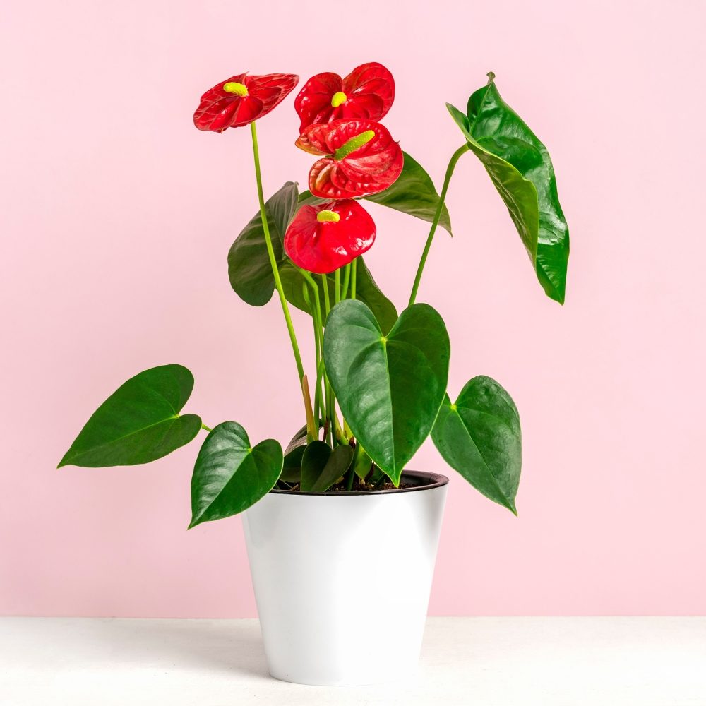 De flamingoplant is de eerste ontdekte anthuriumsoort en tevens de meest bekende. De bloem bestaat uit een rond of eivormig schutblad met een dunne, gekrulde bloeikolf. De naam verraadt het al een beetje: de flamingoplant is verkrijgbaar in felroze. Daarnaast kun je hem ook vinden in andere levendige kleuren, zoals oranje en paars.