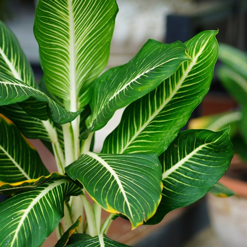 De bladeren van de Dieffenbachia Alix hebben een uniek patroon dat bijna hypnotiserend is. De donkere buitenkant en de lichte binnenkant zorgen voor een bijzonder effect.