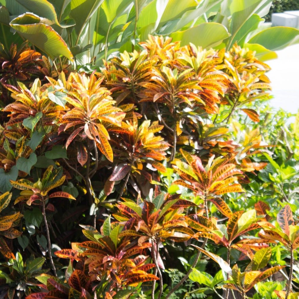 De Croton, ook wel Codiaeum variegatum genoemd, is een opvallende kamerplant die bekend staat om zijn bontgekleurde bladeren. De kleur van het blad is een goede indicatie van de verzorging: een bont blad betekent dat de plant goed verzorgd wordt, een donkerder blad geeft aan dat de plant meer licht nodig heeft, en donkere randen aan de bladeren wijzen op teveel water. Bladeren kunnen ook vallen door te weinig licht of teveel water.