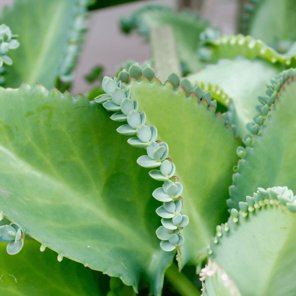 Naast de ‘Mother of millions’ is er ook de ‘Mother of thousands’, ook wel de Kalanchoë daigremontiana. Ook bij de Mother of thousands groeien er babyplantjes aan de bladeren. Zodra de babyplantjes klaar zijn om op eigen benen te staan vallen ze vanzelf van de moederplant af.