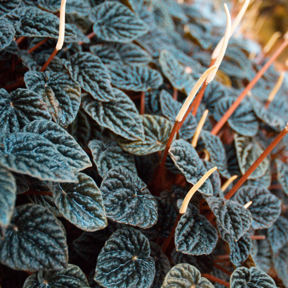 Peperomia, de ideale kamerplant, heeft zijn oorsprong in de tropische regenwouden van Centraal en Zuid-Amerika. Dit veelzijdige geslacht behoort tot de Piperaceae en is nauw verwant aan peper, wat de naam verklaart – 'Peperomia' betekent 'lijkt op pepers'. Met meer dan 1500 soorten, variërend van kruiden en heesters tot klimplanten, is Peperomia vooral bekend om zijn decoratieve bladvormen, -kleuren en -tekeningen. De planten vertonen half-succulente eigenschappen, waardoor ze in staat zijn vocht op te slaan in hun vlezige stengels of bladeren.