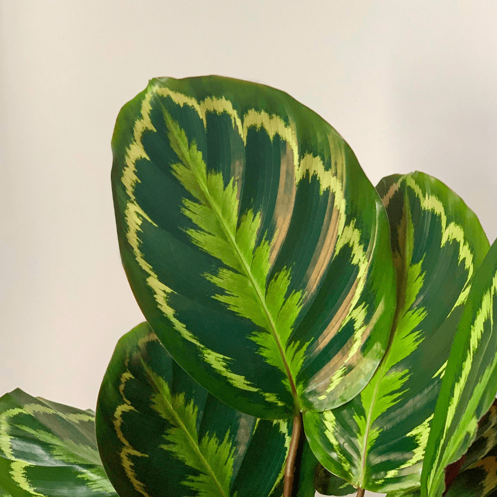 De Calathea Medaillon laat het liefste haar prachtige bladeren aan iedereen zien. De donkergroene bladeren met lichte strepen, doen ons denken aan veren. En wie showt als geen ander met trots zijn veren? Juist, een pauw. De Calathea Medaillon heeft door haar bijzondere tekening dan ook de bijnaam Pauwenplant gekregen.