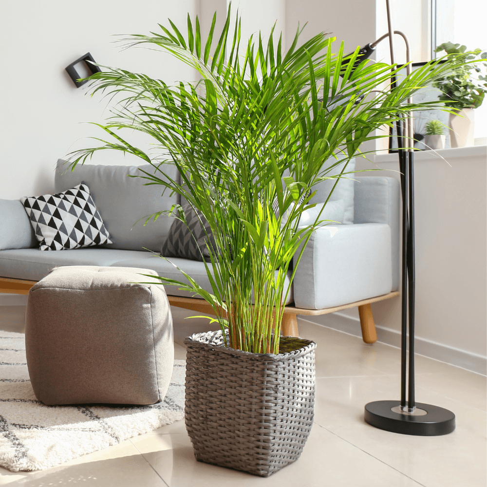 De Goudpalm, ook wel bekend als de Areca palm, staat het liefst op een lichte plek in de halfschaduw. Vermijd direct zonlicht en zorg dat de plant niet op een te koude of tochtige plek staat, want dat kan bruine bladeren veroorzaken.