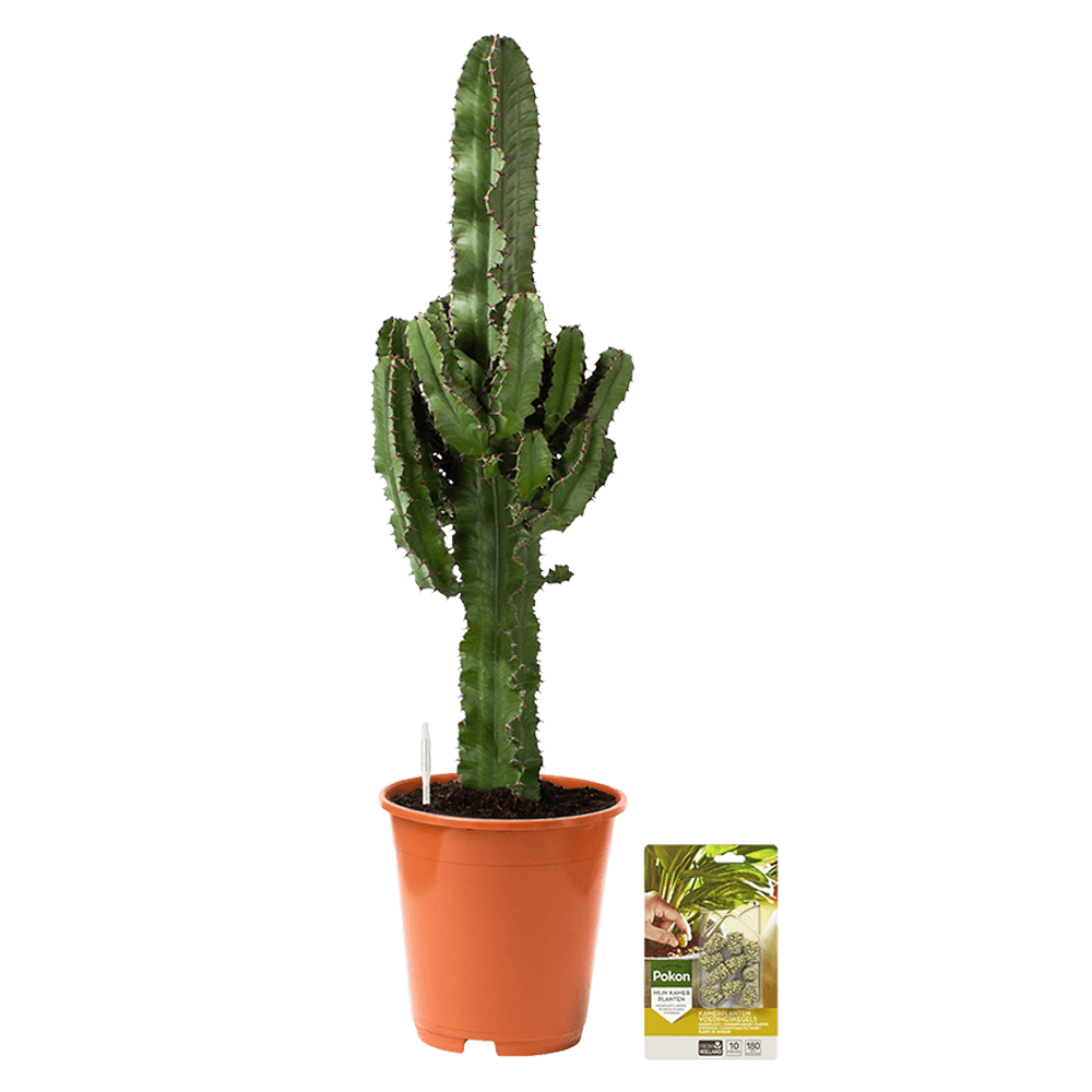 Voeden van de Euphorbia doe je in het groeiseizoen van februari tot en met oktober met Pokon Bio Cactus & Vetplant Voeding. Dit houdt de plant gezond en zorgt voor een goede groei zonder overbemesting.
