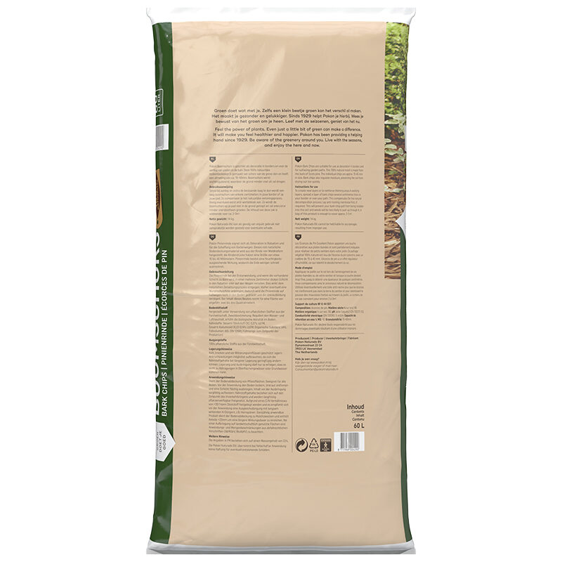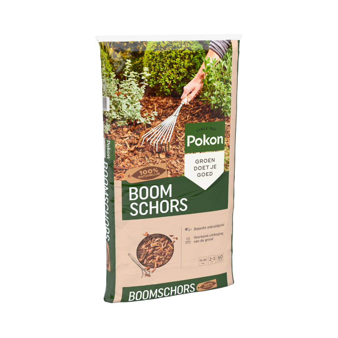 Pokon Boomschors is gemaakt van schors van de grove den. Pokon Boomschors is natuurlijk en biologisch afbreekbaar. De stukjes hebben een afmeting van 15-40 mm.