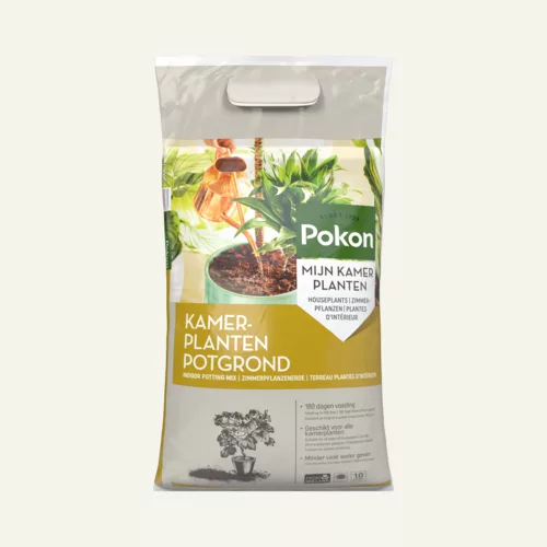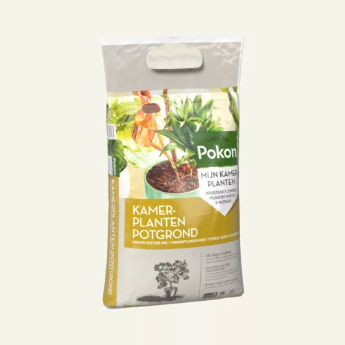 Pokon Kamerplanten Potgrond is geschikt voor alle kamerplanten, dus zowel voor bloeiende als voor groene planten. Kamerplanten staan binnen niet in hun natuurlijke omgeving en hebben daarom een goede voedingsbodem nodig. Deze grond bestaat uit hoogwaardige grondstoffen als tuinturf, grove turfbrokjes, turfstrooisel. Er zit daarnaast voldoende voeding in voor ca. 180 dagen. Ben je opzoek naar potgrond voor anthurium, bonsai, cactus, orchidee of palm? Dan kun je ook kiezen voor speciale Pokon potgrond.