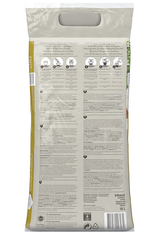 Pokon Palmen Potgrond is geschikt voor alle soorten kamerpalmen. Palmen staan binnen niet in hun natuurlijke omgeving en hebben daarom een goede voedingsbodem nodig. Deze potgrond bestaat uit hoogwaardige grondstoffen als tuinturf, grove turfbrokjes, turfstrooisel en TerraCottem. Door de toegevoegde TerraCottem droogt de grond minder snel uit. Er zit daarnaast voldoende voeding in voor ca. 60 dagen. Voor sommige kamerplanten zoals orchidee, bonsai en anthurium zijn speciale Pokon potgronden verkrijgbaar, die exact zijn afgestemd op de specifieke wensen van deze planten.