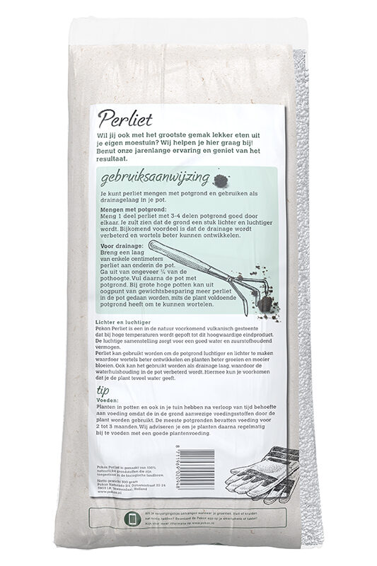 Pokon Bio Perliet is een in de natuur voorkomend vulkanisch gesteente dat bij hoge temperaturen wordt gepoft tot dit hoogwaardige eindproduct. De luchtige samenstelling zorgt voor een goed water en zuurstofhoudend vermogen.