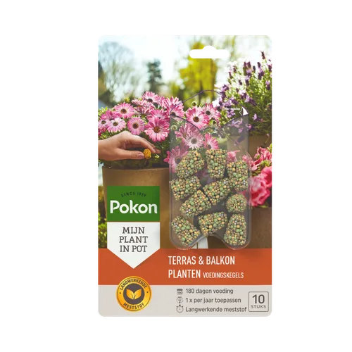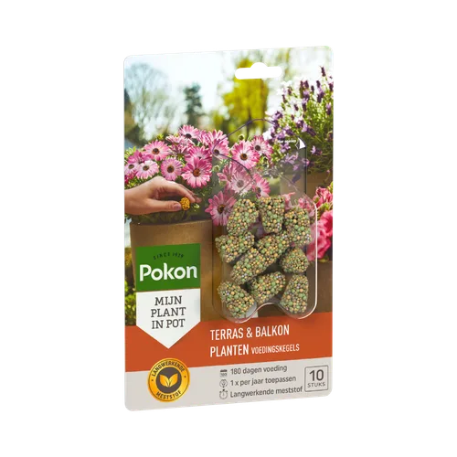 Wil je jouw terras- of balkonplanten makkelijk en langdurig voeden? Met Pokon Voedingskegels zit je helemaal goed! Deze handige kegels geven tot wel 180 dagen voeding af: dat is een heel seizoen genieten van gezonde en bloeiende planten, zonder gedoe!