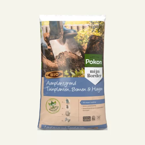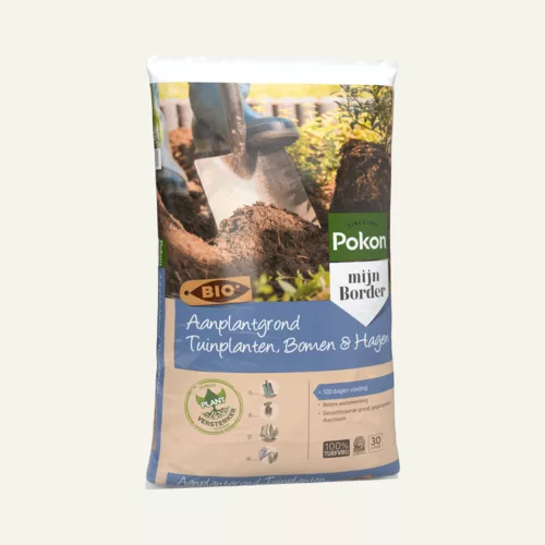 De Pokon Bio Aanplantgrond Tuinplanten, Bomen & Hagen Turfvrij is multifunctioneel. Deze aanplantgrond kan gebruikt worden voor alle tuinplanten, bomen en hagen in de border. Deze aanplantgrond is biologisch en turfvrij. In deze aanplantgrond zit gecomposteerd beukenblad. Dit zorgt voor extra bodemleven waardoor de plant beter aanslaat. Door de toevoeging van klei wordt vocht beter vastgehouden. Bovendien zijn er meststoffen toegevoegd voor ca. 100 dagen.
