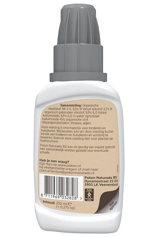 Wij bevelen aan om deze voeding vorstvrij en buiten bereik van kinderen en huisdieren te bewaren. Gebruik deze voeding niet voor planten op hydrocultuur.