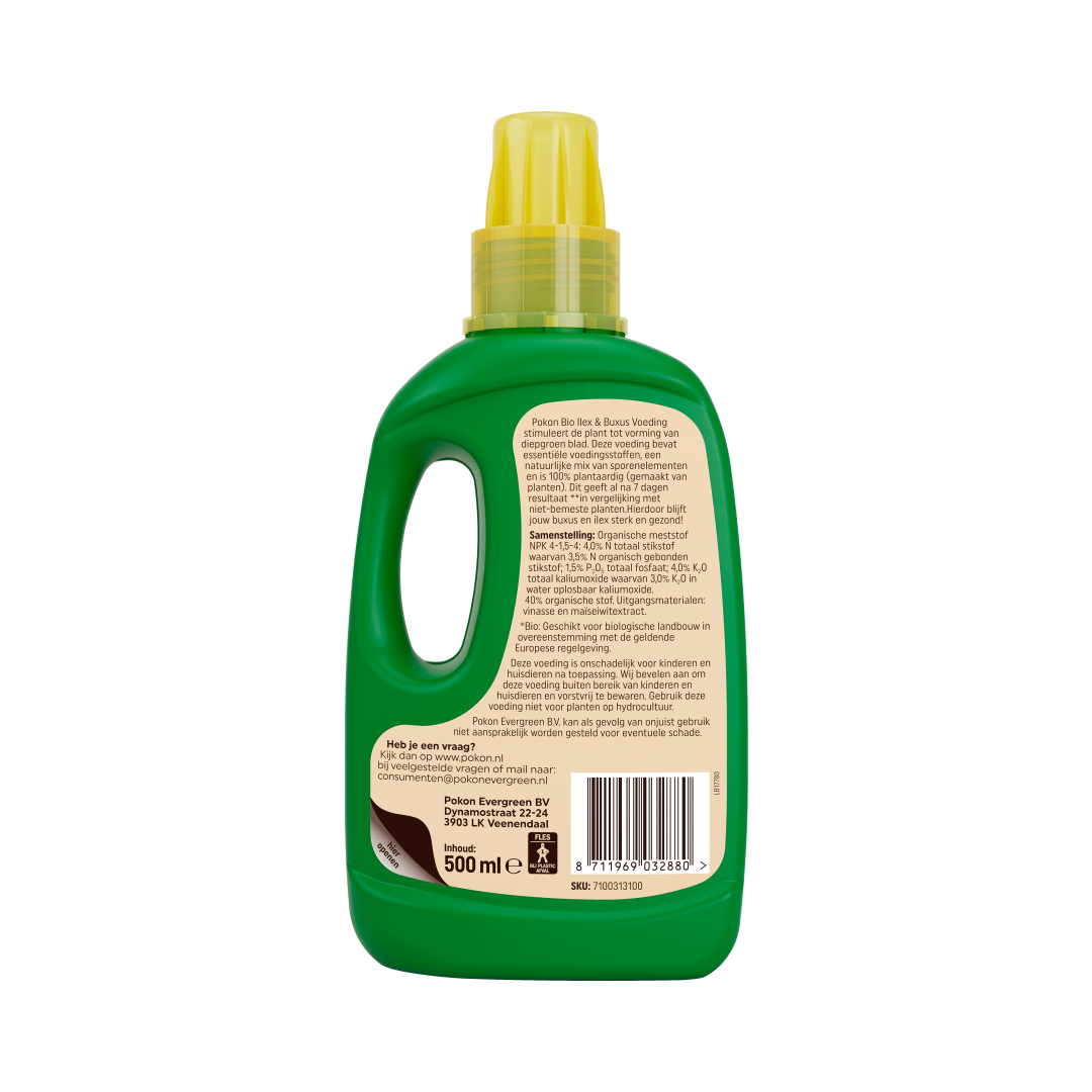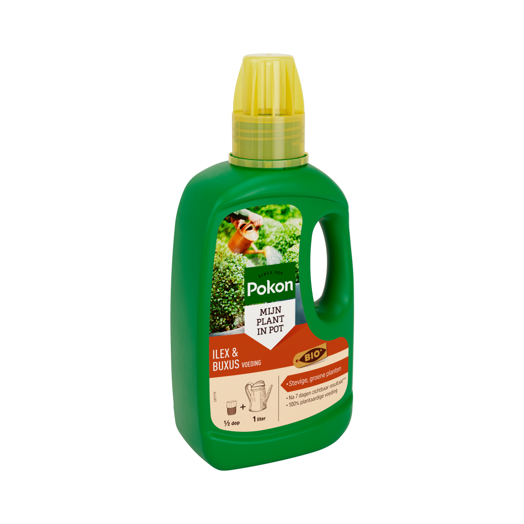 Geef je buxus of ilex wekelijks wat extra's met Pokon Bio Buxus & Ilex Voeding. De voeding is plantaardig en zorgt voor stevige en groene planten. Na 7 dagen zichtbaar resultaat.
