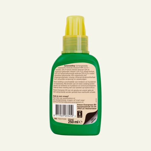 Pokon Bio Kamerplanten Voeding is een samengestelde organisch minerale meststof (NPK 3-2-5) + zeewier.