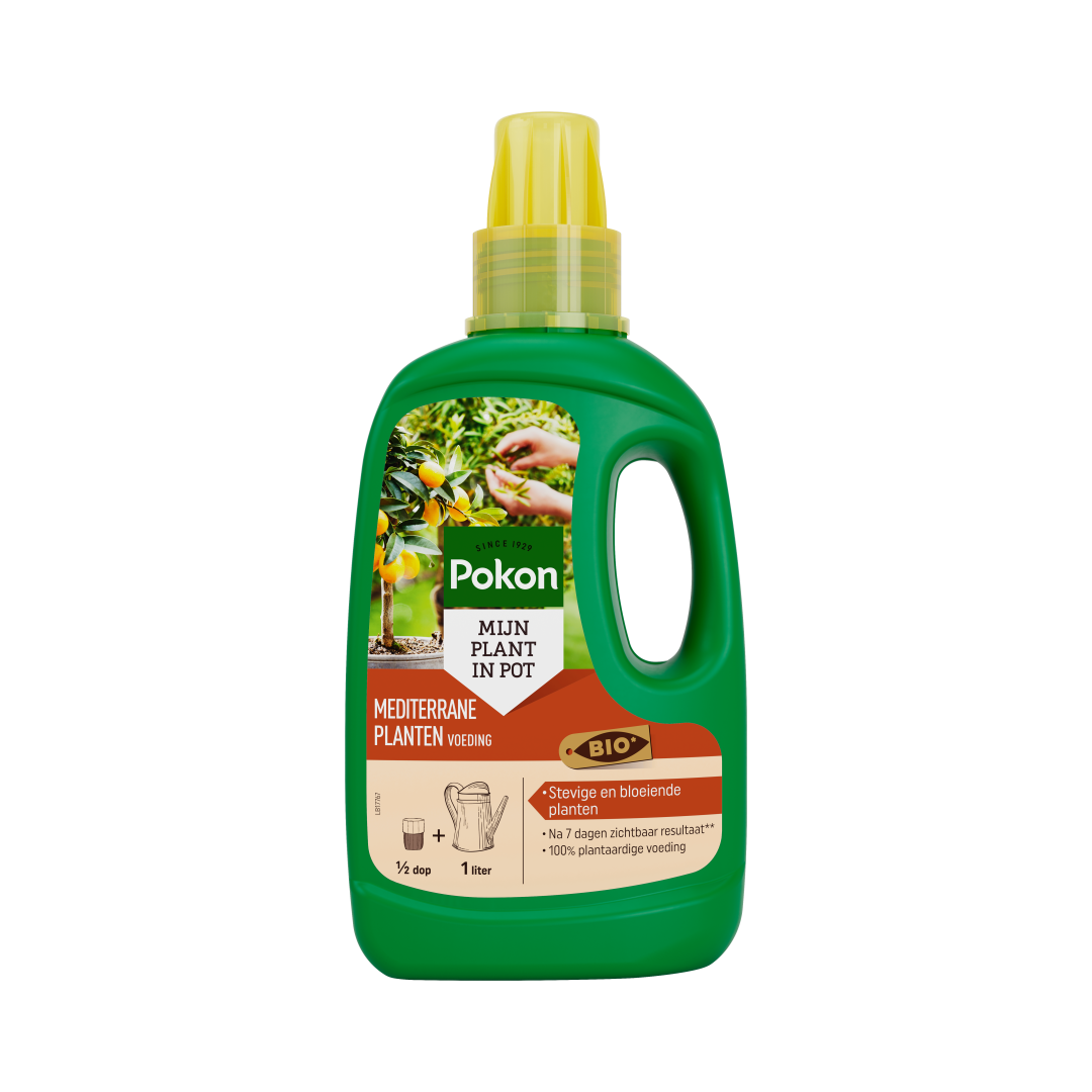 Geef je mediterrane planten van maart tot en met september wekelijks wat extra's met Pokon Bio Mediterrane Voeding. De voeding is plantaardig en zorgt voor stevige en bloeiende planten. Na 7 dagen zichtbaar resultaat.