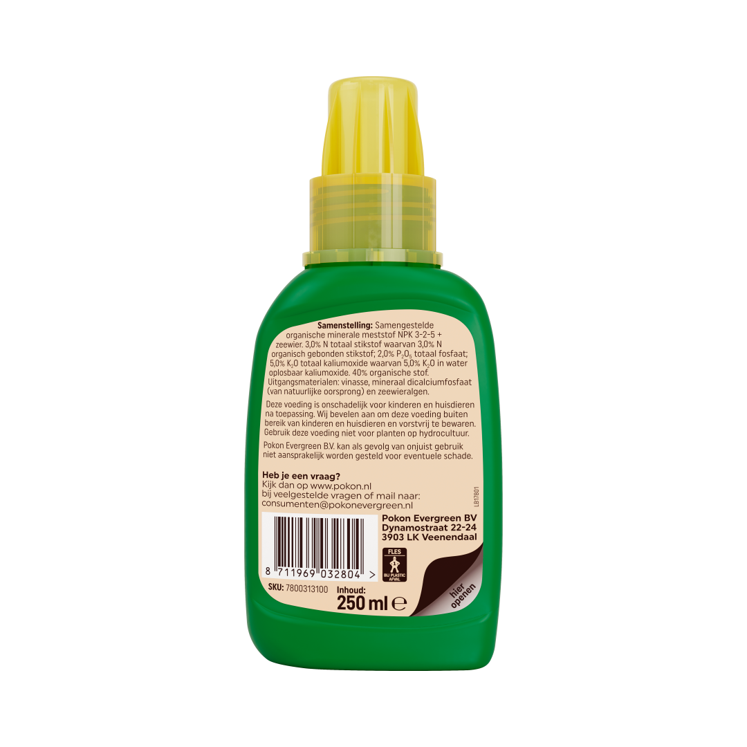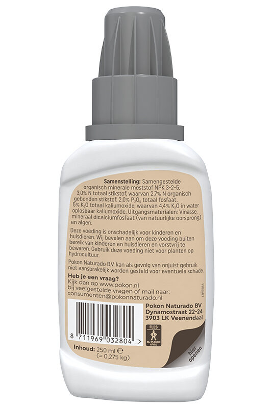 De formule van deze plantenvoeding is veranderd, van minerale voedingen zijn we bijna volledig overgestapt naar biologische voeding! Dit sluit perfect aan bij onze ambitie om Nederland te vergroenen. Onze biologische voedingen bevatten natuurlijke meststoffen. Deze natuurlijke ingredienten zorgen voor een andere kleur dan je gewend bent, het maakt het dikker en geeft een bruine kleur. Maar de werking blijft nog precies zoals je gewend bent