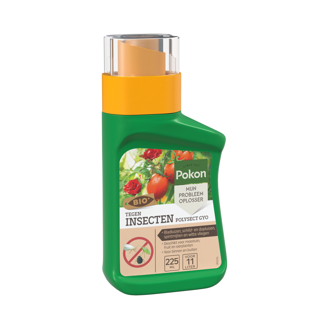 Pokon Bio Tegen Insecten Concentraat ''Polysect GYO' bestrijdt snel en effectief zowel de eitjes, larven als de adulten (volwassen insecten) van bladluizen, schildluizen, dopluizen, spintmijten en witte vliegen. Dit concentraat is geschikt voor moestuin, fruit en sierplanten. Na de behandeling kun je groenten en vruchten zonder problemen eten. Was je groenten en fruit wel even voor je ze gaat eten.
