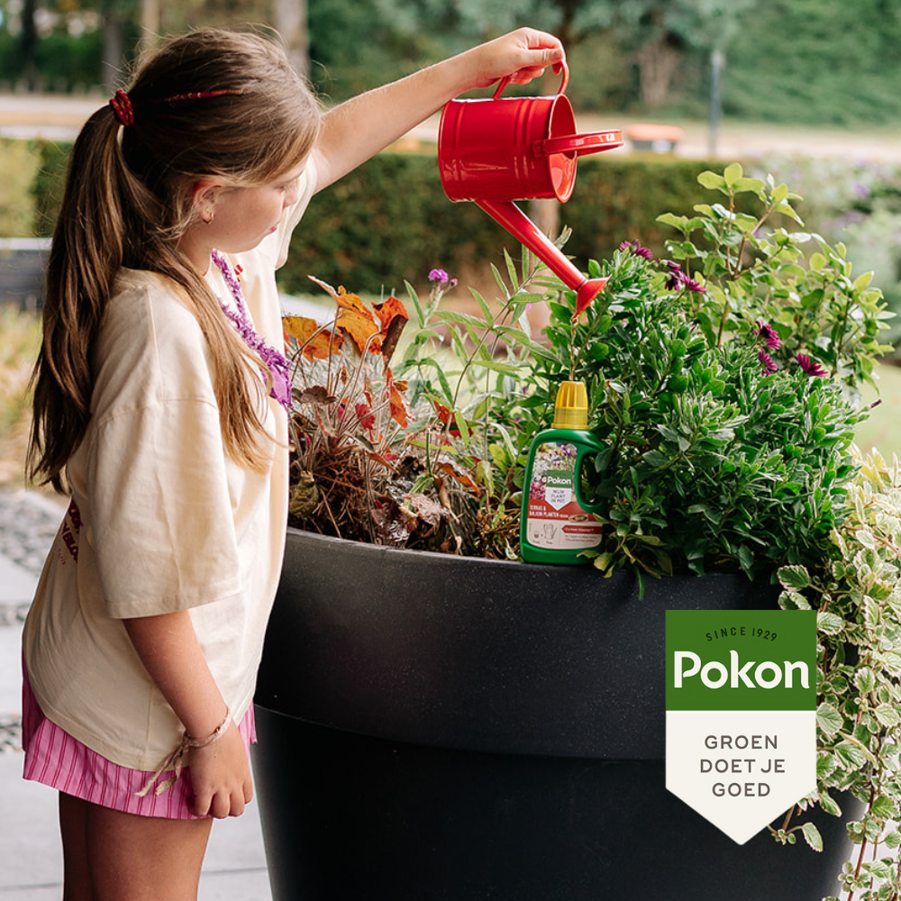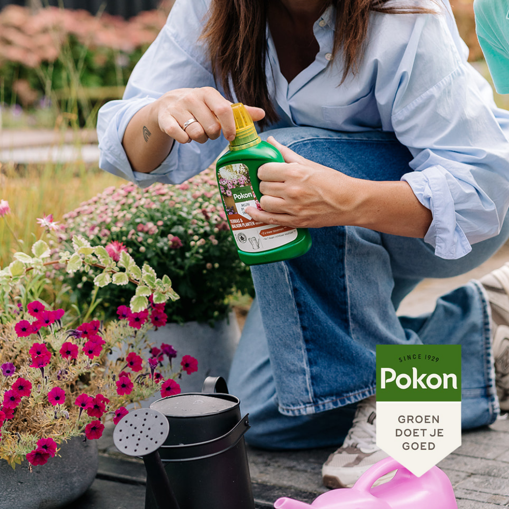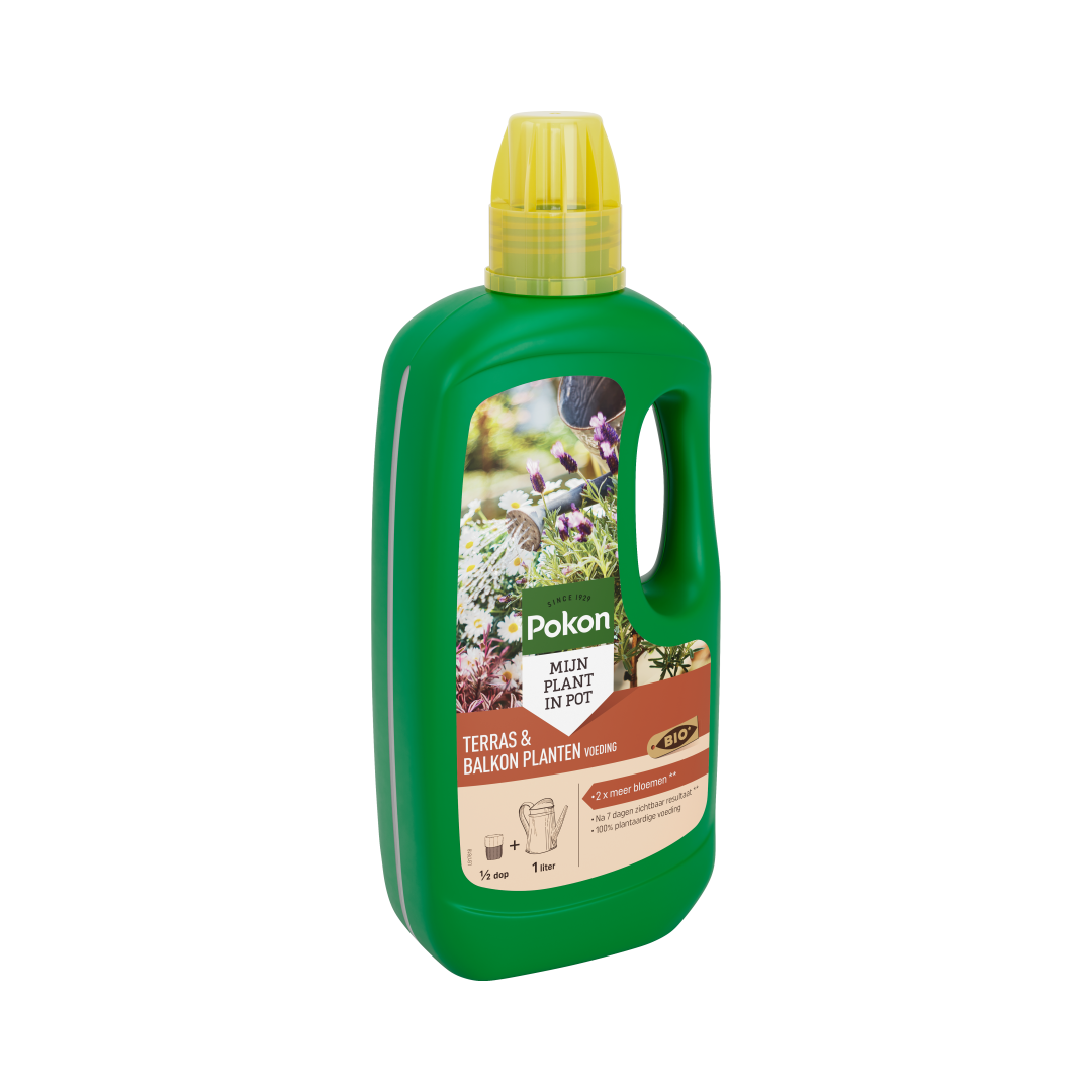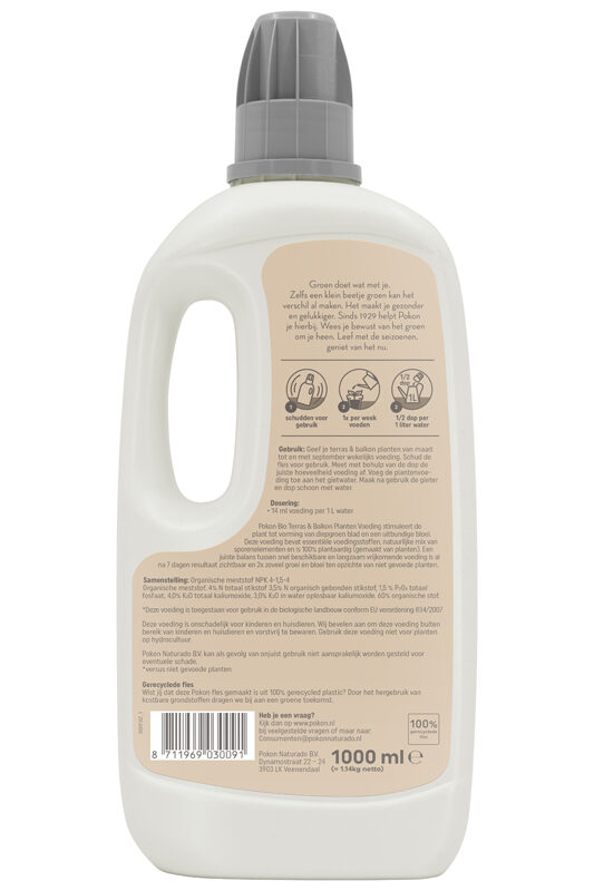 De fles van Pokon Bio Terras & Balkon Planten Voeding is gemaakt van 50% gerecycled plastic. Door het hergebruik van kostbare grondstoffen dragen we bij aan een groene toekomst.