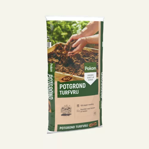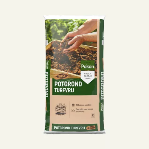 In de grond zitten voedingsstoffen die door de plant worden opgenomen. Na verloop van tijd raken deze voedingsstoffen op. Aan Pokon Bio Turfvrije Potgrond is voor 100 dagen voeding toegevoegd. Het is belangrijk om planten hierna regelmatig bij te voeden met een goede meststof of vloeibare plantenvoeding van Pokon.