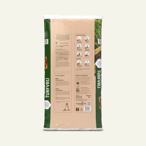Pokon Bio Turfvrije Potgrond bevat uitsluitend hoogwaardige grondstoffen, zoals kokosgruis, gecomposteerde boomschors, houtvezel, groencompost, rijstkaf en meststoffen. In dit product zitten geen grondstoffen afkomstig van veen.