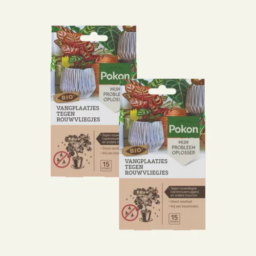 Met de Pokon Bio Vangplaatjes vang je de volwassen vliegjes en voorkom je dat ze eitjes leggen. Zo doorbreek je de cyclus en verdwijnen de rouwvliegjes.