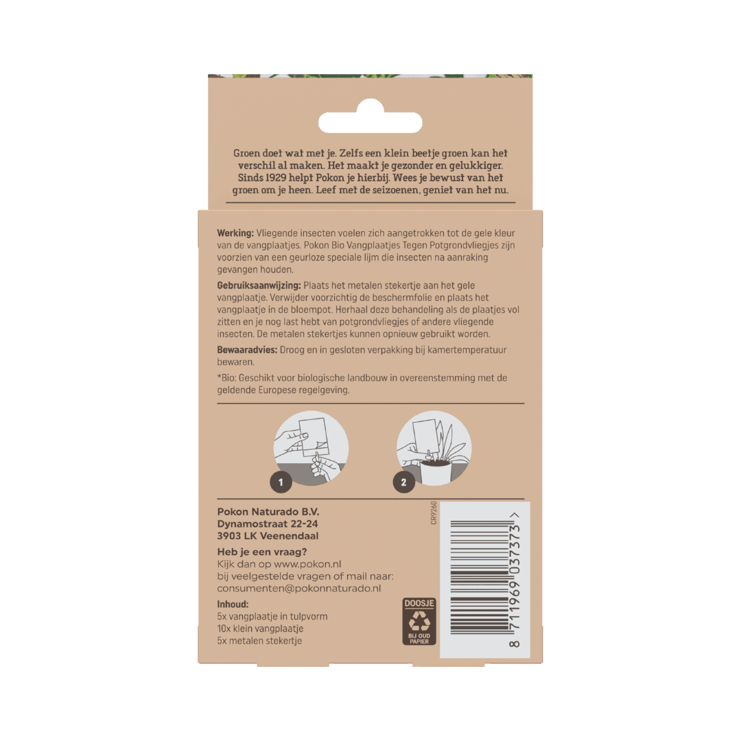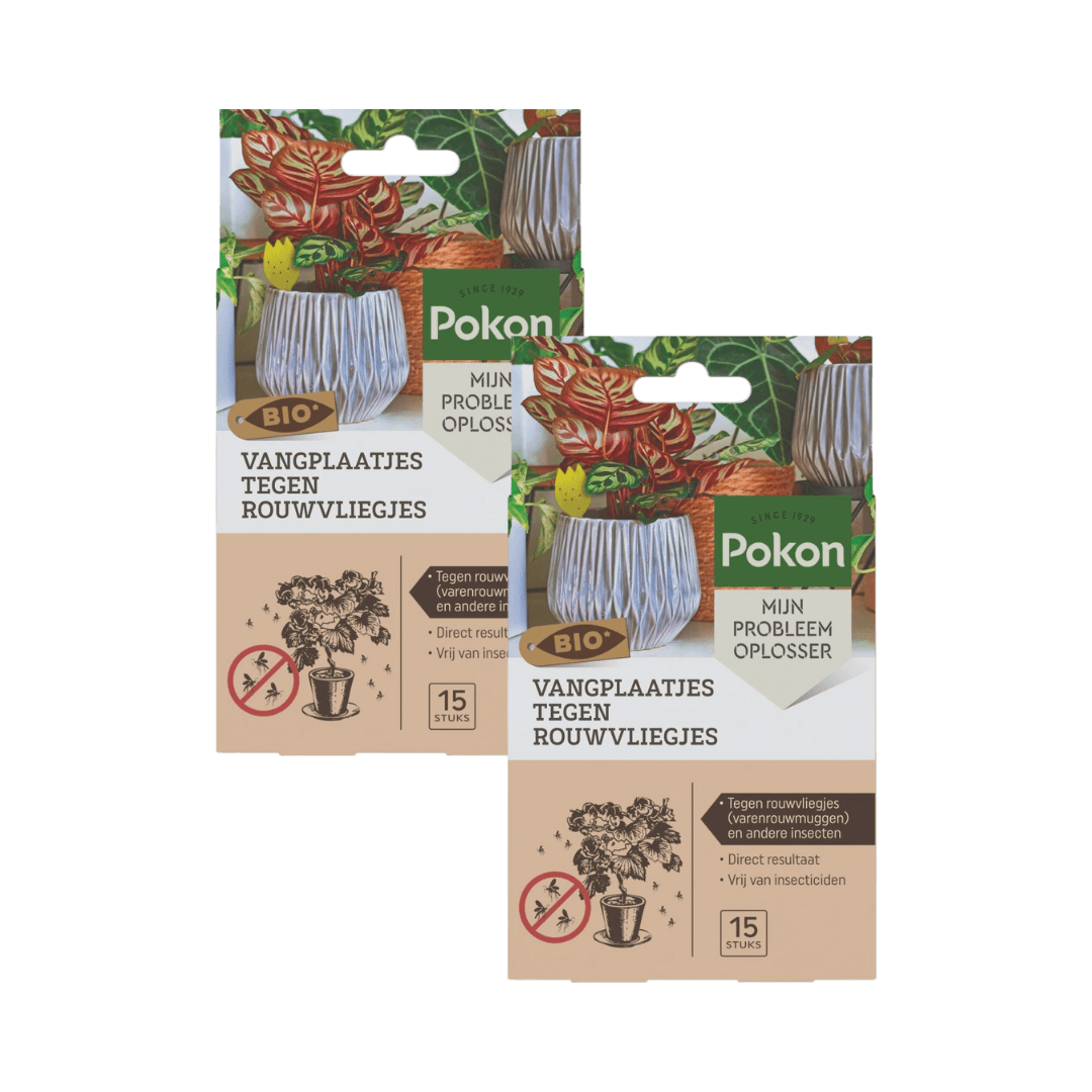 Tip: combineer de vangplaatjes met Pokon Aaltjes Tegen Rouwvliegjes. De vangplaatjes pakken de volwassen vliegjes aan, terwijl de aaltjes de larven in de grond bestrijden. Zo zorg je voor een complete en natuurlijke aanpak.
