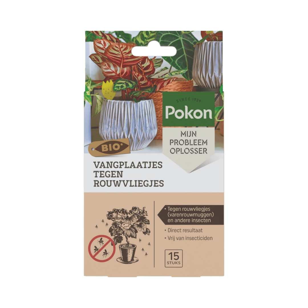 Met de Pokon Bio Vangplaatjes vang je de volwassen vliegjes en voorkom je dat ze eitjes leggen. Zo doorbreek je de cyclus en verdwijnen de rouwvliegjes.