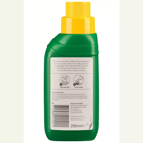 Pokon Bonsai Voeding bestaat uit een 1:1 met water verdunde oplossing op basis van een 4-4-6 NPK meststof met humuszuren, plantenextracten en sporenelementen.